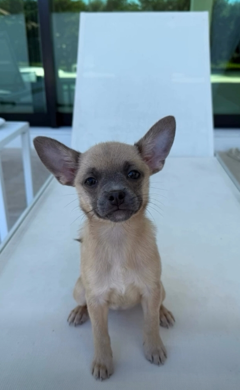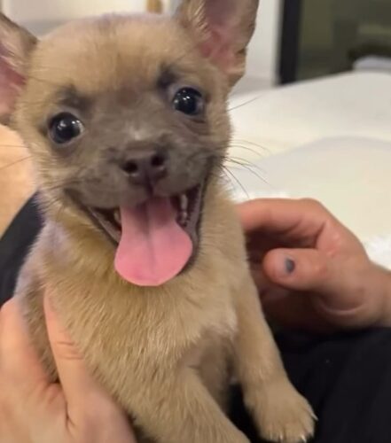 Desi is officially up for adoption! She is an adorable Chihuahua–Terrier mix about 3 months old and currently weighs around 4 pounds.